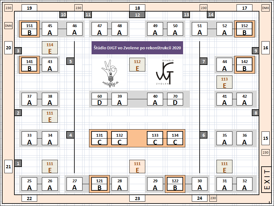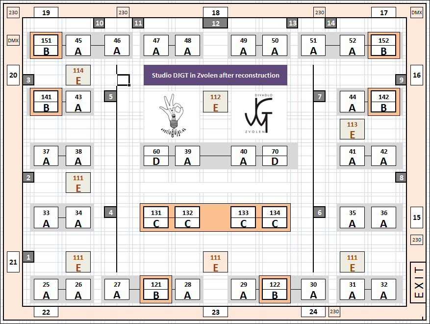 Svetelné vybavenie sály DJGT-Zvolen – plán